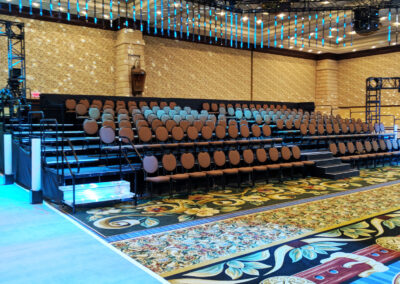 At In Depth Events, we understand the importance of creating a positive experience for every attendee. Our assigned seating audience risers are designed with precision and flexibility to cater to diverse applications. From enhancing visibility in a black box theater to hosting award ceremonies where every view matters, we provide structures that ensure each seat offers a premium perspective. We work with your ticketing layout to ensure you have the seats needed to match your goals.  Part of the service at In Depth Events includes chair identification stickers, row and aisle markers, and low-level lighting for safety before, during, and after the performance.