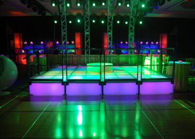 Illuminate your event with a visually stunning LED lighted stage rentals from In Depth Events. Our LED stages are not just platforms, they’re high-tech centerpieces that can highlight any occasion with up to a million color combinations and precise color matching capabilities. Our stages are designed to work with an existing lighting system through DMX integration, so they can be controlled as a part of a full professional lighting rig or as impressive standalone pieces. Our LED stage rentals offer an unforgettable immersive experience that will captivate your audience and set the tone for a spectacular event.