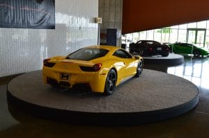 A turntable stage DOES have a motor that allows it to turn. This motor can be fixed speed or variable speed. The motor is either controlled by a manual switch or can be outfitted with a DMX relay for remote control. Turntables, like round stages, are also measured in diameter. 12 foot is common as well as 20 foot diameter turntable rentals. Turntables can be built flush with a fixed stage surface, but this is an expensive option. Typically, they are placed on an existing stage or in a hotel ballroom as product display.